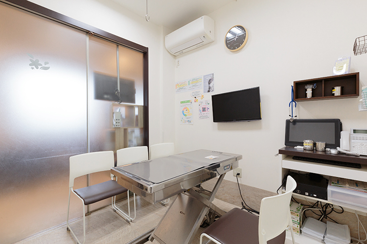 【小森院長】動物病院は慣れない場所。少しでも快適に過ごせるようさまざまな工夫を行っています。待合室のモニターには順番待ちの番号を表示し、あと何人で自分の番かわかるようにしているほか、画面を時々変えて、退屈をしのげるように情報や動画も流しています。 【堀本先生】高齢や寝たきり、手術後など体が弱っている子には、診察時に毛布を敷くようにしていますね。毛布が頭などを支える助けになり、負担を減らして体勢を安定させることができるんです。 【高島先生】また超音波検査やエックス線検査、血液検査などの結果もすべて電子化していて、院内のパソコンで誰もがどこでも確認できるようになっています。すべてのスタッフが情報共有していますので、検査時の診察担当者ではなかったとしても、気軽に相談してもらえたらと思います。