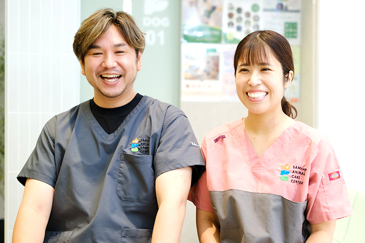 【崇敬院長】そうですね。サムは病気の発見が少し遅れて、手術のできない状態でした。動物との暮らしは心を豊かにし、楽しい思い出もたくさんできますが、その生涯は人間よりも短いものです。そのようなことも含めて、最期の時を自宅でご家族と一緒に迎えられるように、動物病院としてできることに力を尽くしています。これからは心の中にいるサムと一緒に、多くのワンちゃん猫ちゃんの幸せのために貢献していきたいです。 【加帆里さん】私が獣医療の道に進んだのは、私とほぼ同時期に生まれたヨークシャー・テリアの存在がきっかけでした。祖母の家にいたその子が本当にかわいくて、でも一緒にいられる時間は14年しかありませんでした。その後、畜産学科の学生だった頃に動物病院で働く道を知って今に至ります。大好きだったあの子に「もっともっとレベルアップして、すてきな愛玩動物看護師になるよ」と伝えたいです。