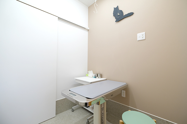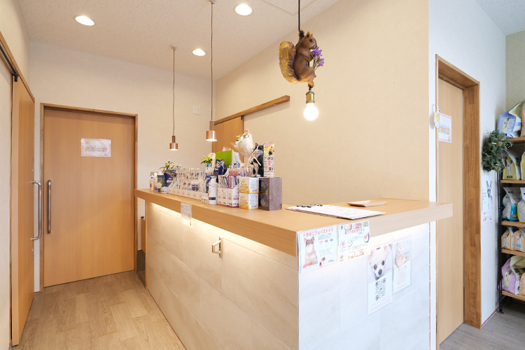 少しでも動物への負担を軽減したいと考え、手術室とレントゲン撮影室を一部屋にまとめました。これにより、膀胱結石手術のときのように、術中にレントゲン撮影を行う必要がある際、移動をせずに済むようになったのです。また、診察室や入院室は犬と猫で分け、それぞれの空間には動物が落ち着きやすくなるフェロモンを散布しました。犬も猫も、安心して過ごしていただけるでしょう。より強い安心感につなげるために、近いうちに、猫に優しい動物病院の基準の一つとしてある「キャット・フレンドリー・クリニック」を取得できたらとも考えています。さらに、飼い主さんにも気持ち良く過ごしていただけたらと思い、院内はおしゃれなカフェのような、かわいらしいデザインにしました。中でも、受付に設置したリスのライトが私のお気に入りですので、受診された際にぜひ見てみてくださいね。
