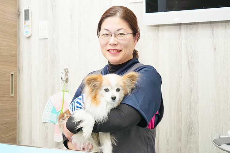 医療機関でのトリミングなので、安全性にしっかりと配慮できていると自負しています。飼い主さんの安心にもつながっているようで、うれしく思っています。実はじっと立ったままのトリミングは、動物にとっては重労働なんですよ。まして高齢や体調の悪い子には重い負担になりますから、当院ではその子に合わせて、できるだけ負担のかからないようなトリミングを心がけます。トリマーの方にとっても、1頭のトリミングに3時間以上かかることもあり、かなりの重労働ではありますが、動物の扱い方や接し方が素晴らしいとリスペクトしています。ぜひ、当院でも一緒に働きたいと考えて加わってもらいました。アシスタントも、獣医師とは異なる視点で動物や飼い主さんに接してくれるところがいいなと思っています。当院には、犬のしつけを専門に学んだスタッフも在籍していますので、子犬のしつけ方や、日常の困り事の相談など、ぜひ気軽に頼っていただきたいですね。