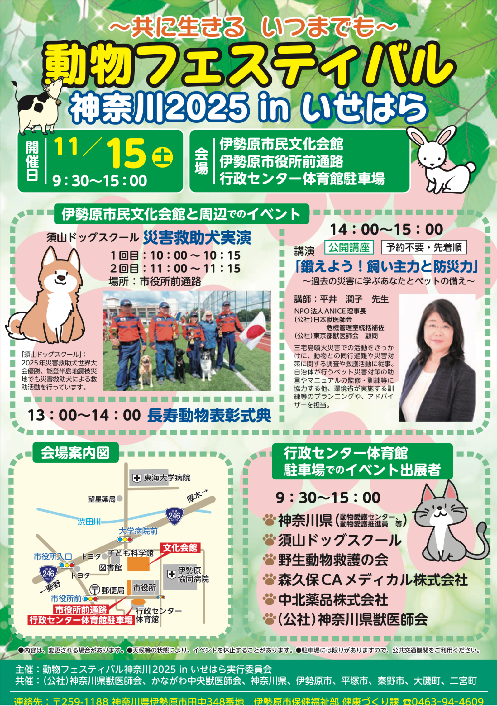 11/15土に伊勢原市役所至近にて、動物フェスティバルが開催されます。